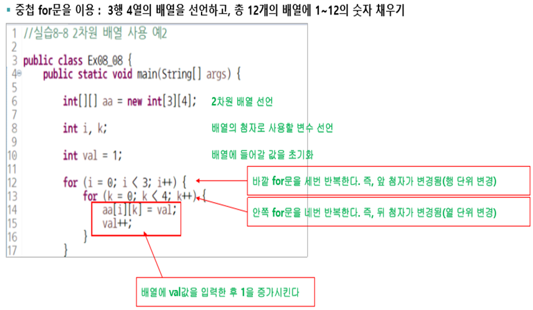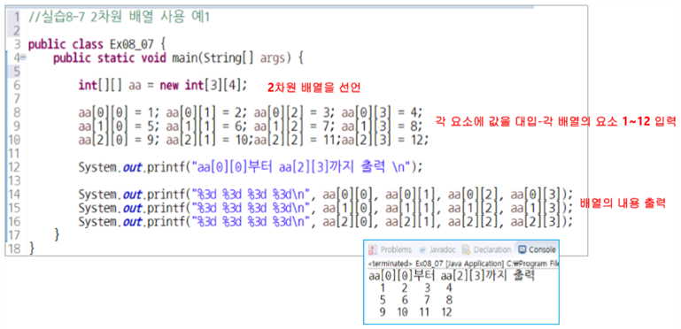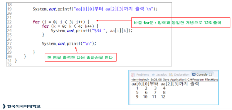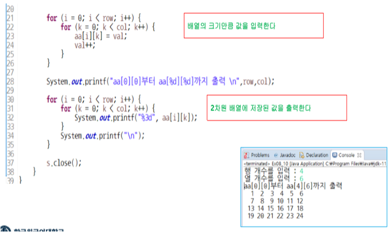 -> 배열의 모든 요소를 쓸 때는 각 행을 기준으로 열값들을 입력