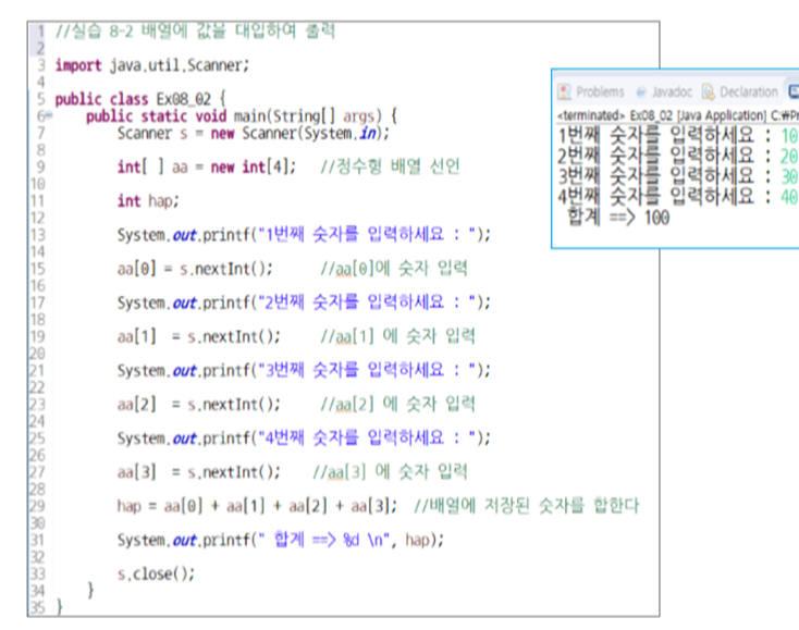 배열은 동일한 성격의 변수들을 묶어주는 개념이다.