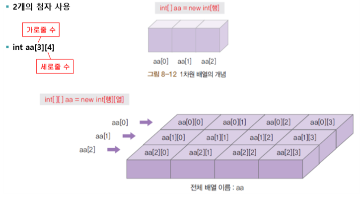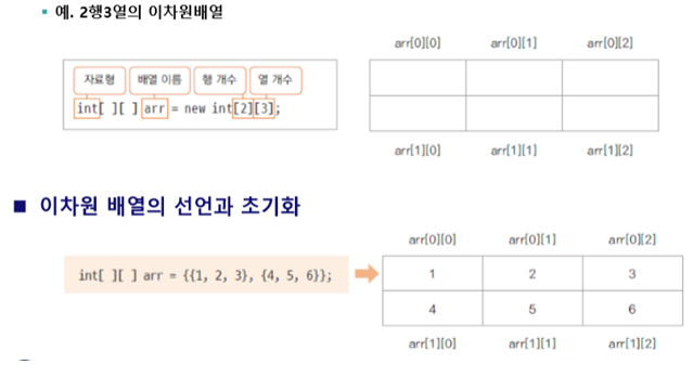 1차원 배열을 모아서 평면을 만든다! (x, y축의 개념) (가로-행(row)/ 세로-열(col))