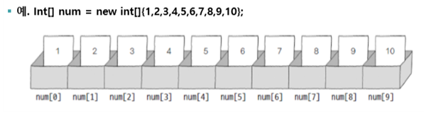 1. 자료형[ ] 배열이름 = new 자료형[개수];