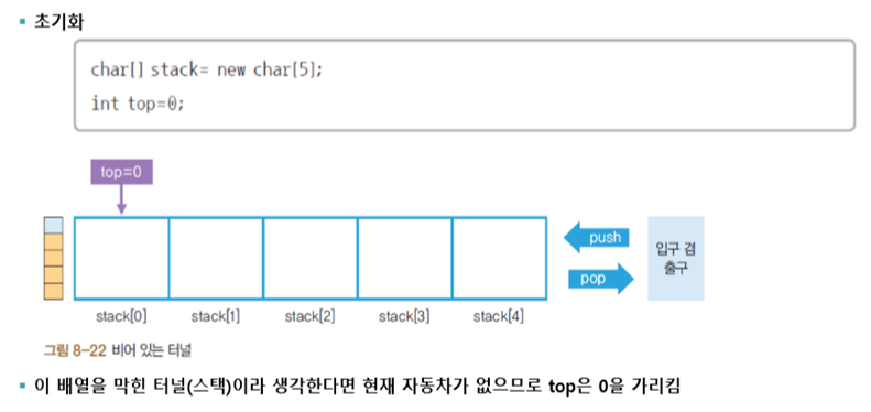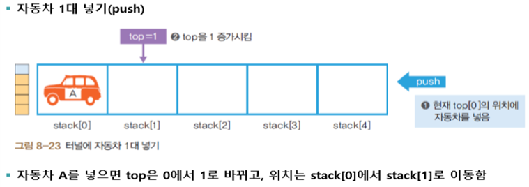 여기에 하나의 데이터를 push한다면? -> top이 이동
