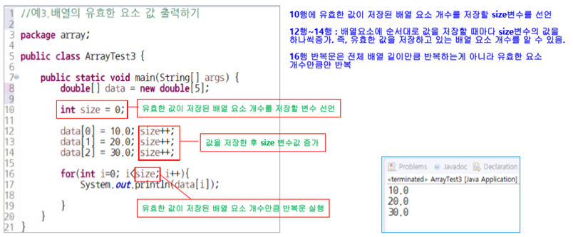 배열의 유효한 값 개수와 선언할 때의 배열의 개수가 같지 않아도 됨