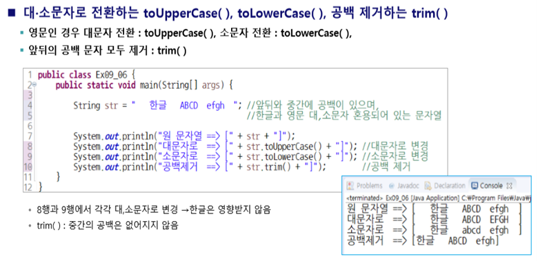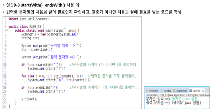 boolean yn = str.startWith(“A”); -> ‘A’로 시작하는가? ~ False