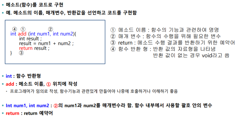 return result; -> 메소드의 결과 값을 반환해주는 예약어