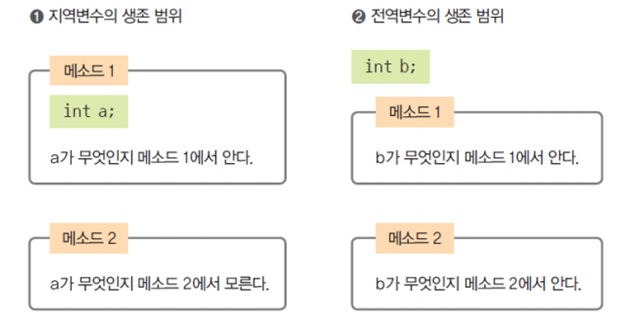 전역(global)변수: 메소드 밖, 프로그램 전체에서 사용되는 변수