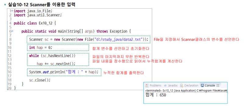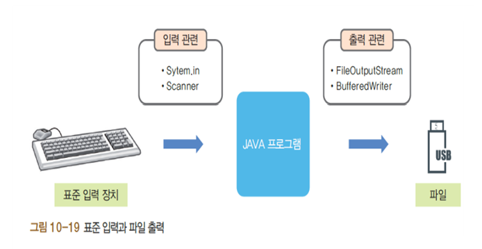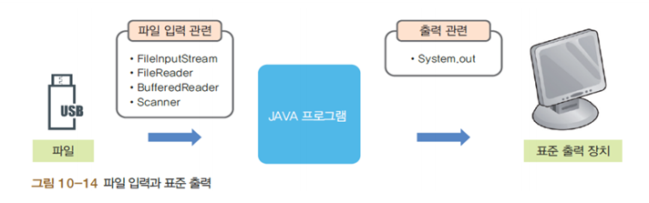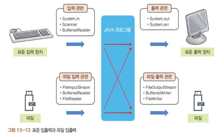 표준입출력과 파일입출력은 사용하는 클래스와 메소드가 다르지만 각 메소드의 사용법은 크게 다르지 않다.