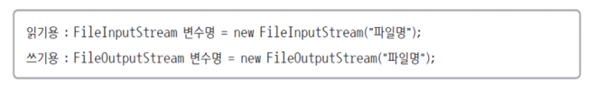 우선 파일을 열기 위해선 관련 클래스에서 변수를 선언하고 파일명을 지정해야 함