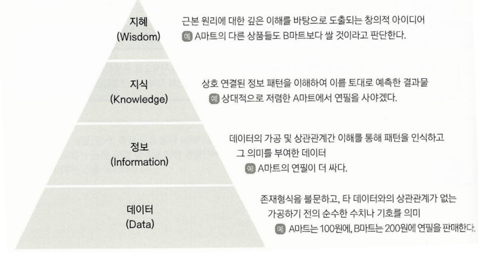 데이터 = 객관적 사실(fact, raw material) ~ DBMS에 저장/검색/분석하여 활용