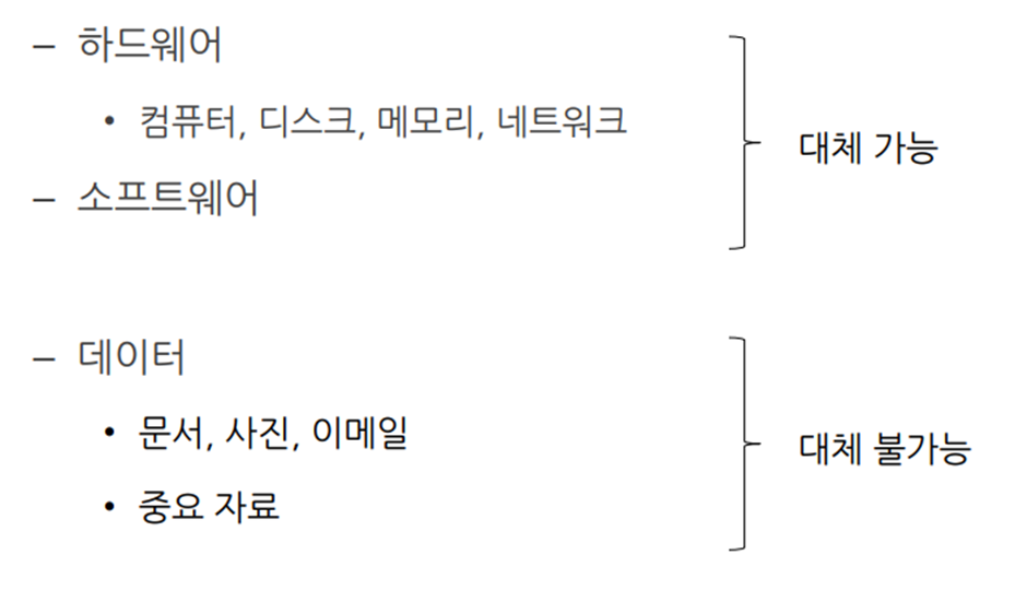 - 가용성(Availability): 정보 자산에 대해 적절한 시간에 접근 가능한 것을 의미