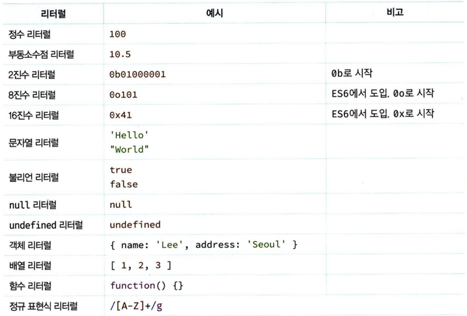 리터럴(literal)은 사람이 이해할 수 있는 문자 또는 약속된 기호로 값을 생성하는 표기법이다