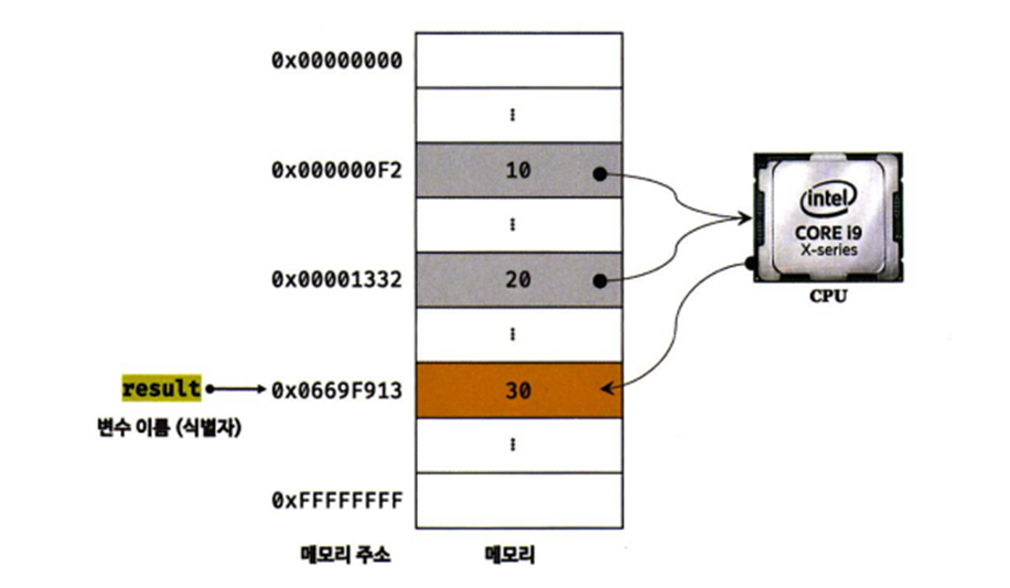 재사용을 위해 메모리 주소로 직접 연산 결과에 접근하는 것은 시스템에 치명적인 오류를 발생시킬 수 있다. 따라서 변수(variable)를 활용해 하나의 값을 저장하기 위한 메모리 공간 확보 및 식별하기 위한 이름을 붙인다. 이는 컴파일러 또는 인터프리터에 의해 메모리 공간의 주소로 치환되어 실행된다