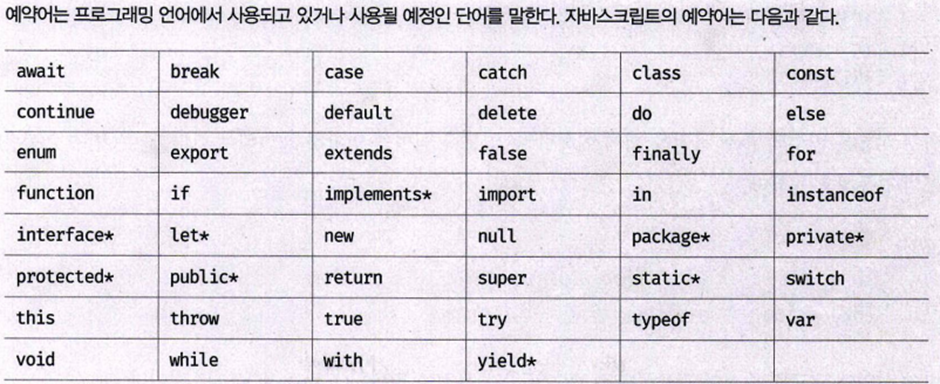 - 예약어(키워드)는 식별자로 사용할 수 없다