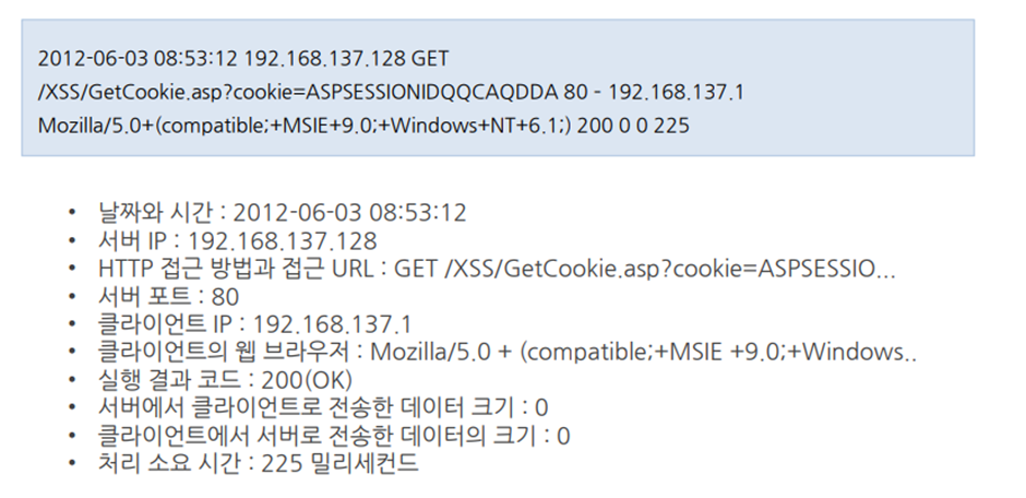 웹 서버의 로그는 기본적으로 W3C 형식으로 남도록 설정한다