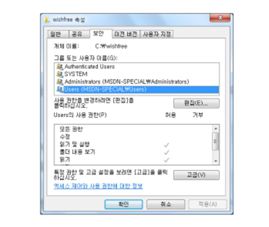 - 응용 프로그램은 자신을 실행한 계정의 권한을 상속