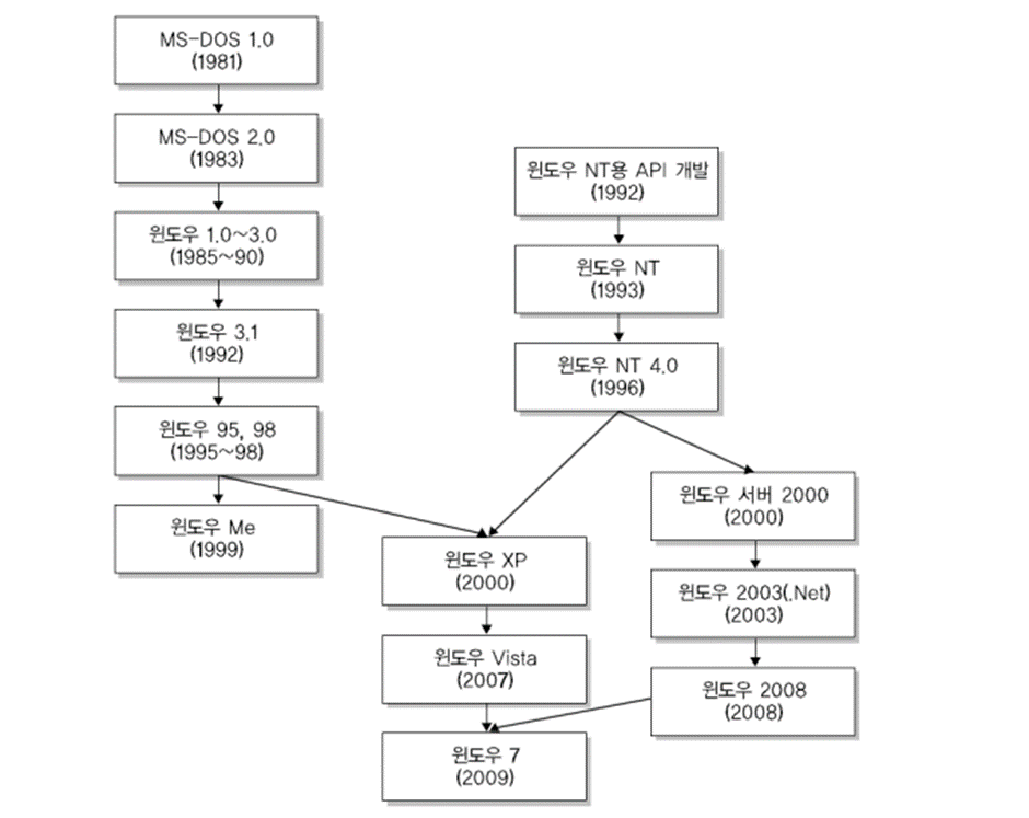 윈도우의 커널(Kernel)은 인터럽트 처리, 프로세스 / 메모리 / 파일 시스템 관리, 프로그래밍 인터페이스 제공 등 운영체제의 기본 기능을 제공한다