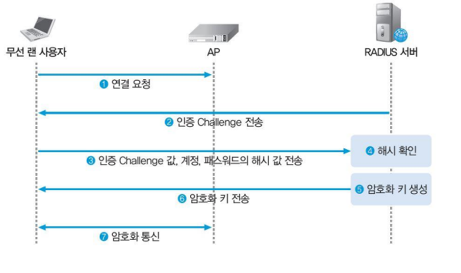 802.1X/EAP와 RADIUS 서버를 이용해 무선 랜 사용자를 인증한다