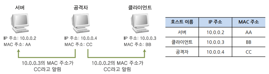 - 서버와 클라이언트에게 잘못된 MAC 주소를 알려줌