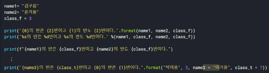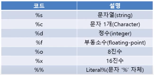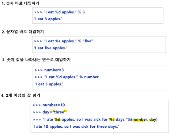 문자열 포매팅 -> 문자열 안에 어떤 값을 삽입