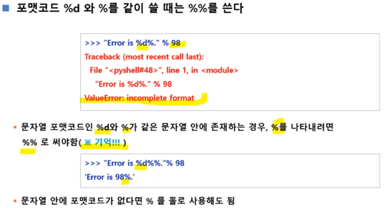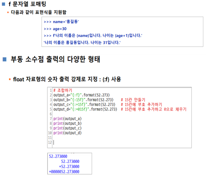 포맷코드와 숫자를 함께 사용하는 경우 -> 변수와 자료형(print 서식) 참고