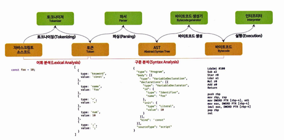 구글의 V8 엔진으로 빌드된 자바스크립트 런타임 환경인 Node.js의 등장으로 자바스크립트는 브라우저를 벗어나 서버 사이드에서도 사용될 수 있는 범용 개발 언어가 되었으며, 대부분의 프로그래밍 언어는 운영체제나 가상 머신 위에서 실행되지만 자바스크립트는 브라우저에서 HTML, CSS와 함께 실행되어 파싱 및 렌더링 된다