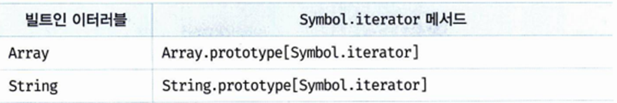 // 배열은 Array.prototype의 Symbol.iterator 메서드를 상속받는 이터러블이다.