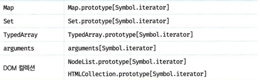 적용할 수 있는 대상은 Array, String, Map, Set, DOM 컬렉션, arguments와 같이 for…of 문으로 순회할 수 있는 이터러블에 한정된다