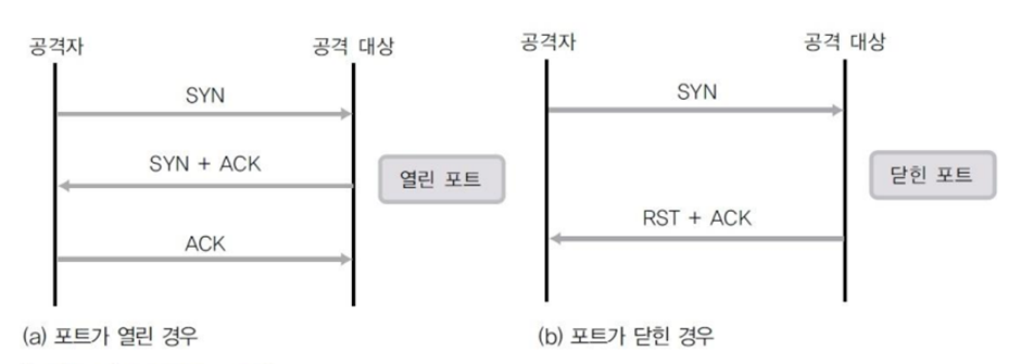 보통 포트 스캔은 로그가 남아 서버 관리자가 눈치챌 수 있어, 해커들은 세션 연결을 하지 않고 포트 활성화 여부를 확인하는 스텔스 스캔을 사용해 로그를 남기지 않는다