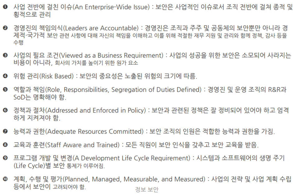 - 정보 보안 업무를 기획하고 각종 통제 사항을 관리