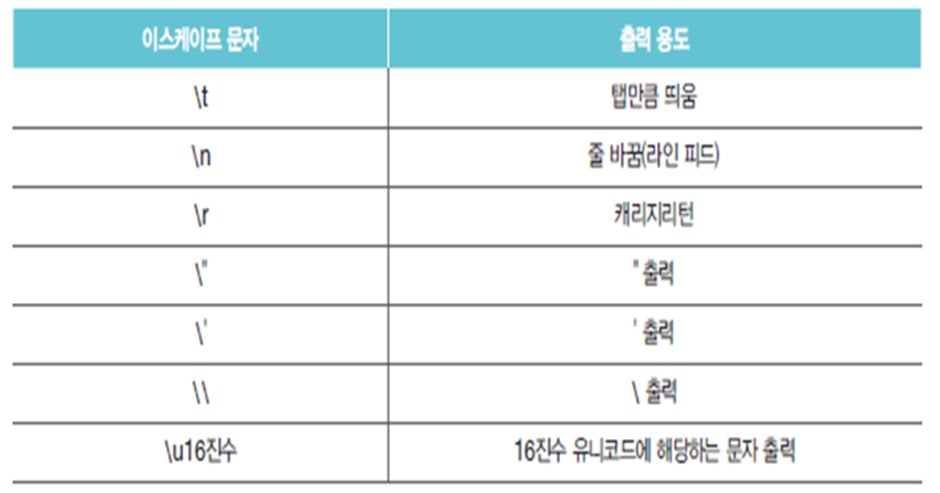 문자열 내부의 이스케이프 문자로 특정 문자를 포함시키거나 출력을 제어할 수 있다