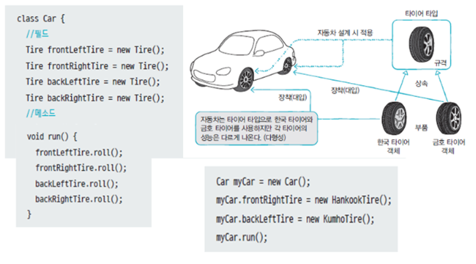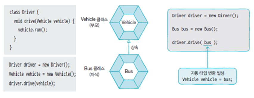 사용 방법은 동일하지만 다양한 객체를 활용해 여러 실행 결과가 나오도록 하는 성질을 다형성(Polymorphism)이라 하며, 메소드 재정의와 타입 변환으로 구현할 수 있다