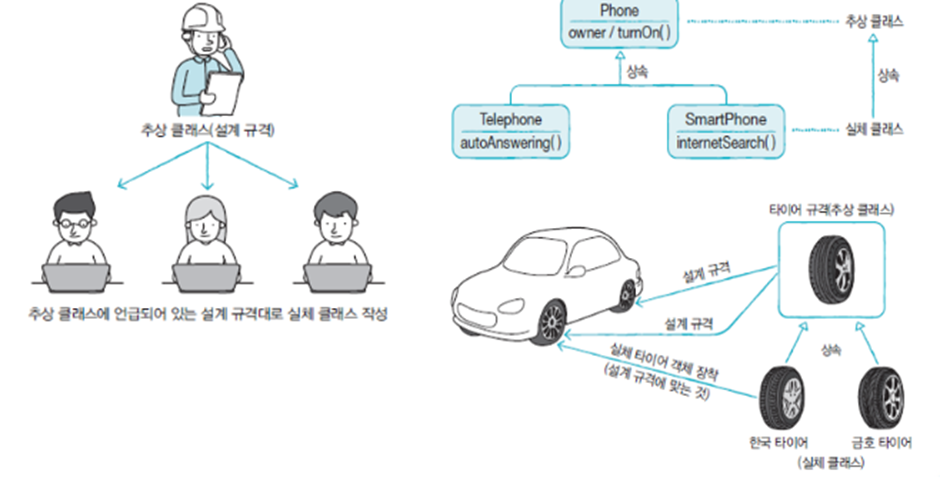추상 클래스는 클래스들의 공통적 특성(필드, 메소드)을 추출해 상속 관계를 가지도록 한다