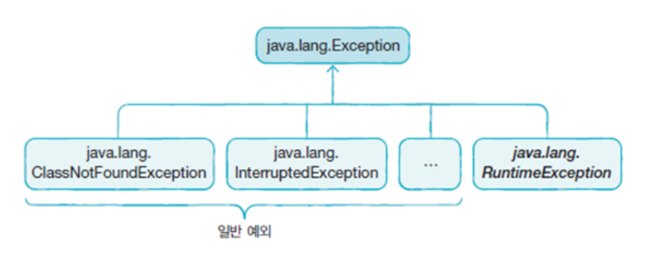 - 일반 예외: 컴파일러가 체크하는 예외로, 컴파일 과정에 해당 예외 처리 코드가 있는지 검사