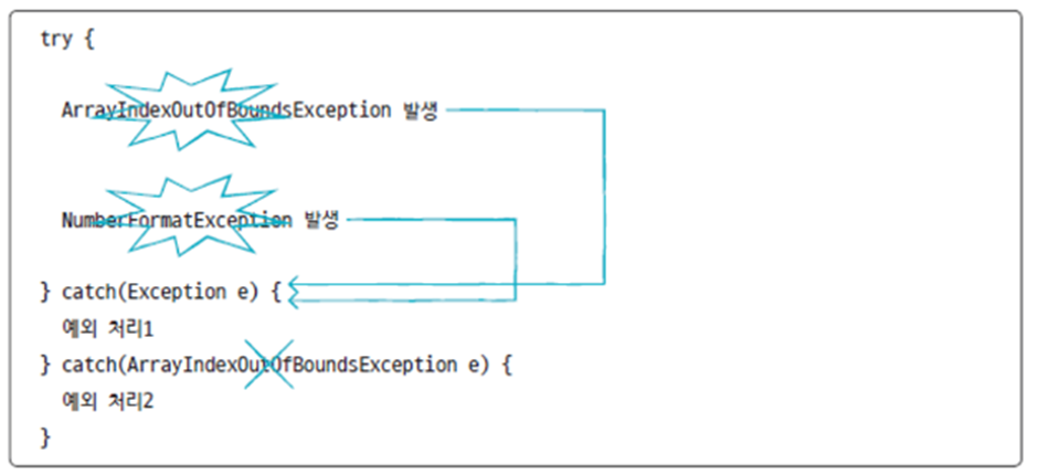 - ArrayIndexOutOfBoundsException: 배열에서 인덱스 범위를 초과할 경우 발생