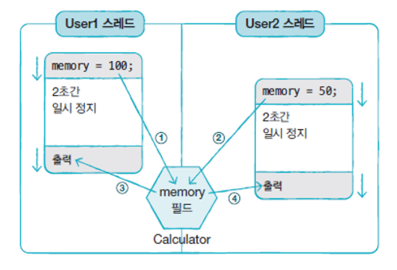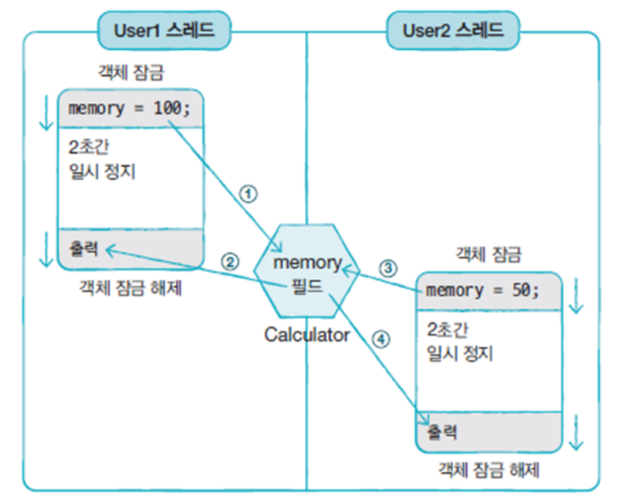 멀티 스레드 프로그램에서 스레드들이 객체를 공유해 작업하면 예상치 못한 결과가 나올 수 있다