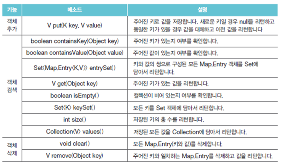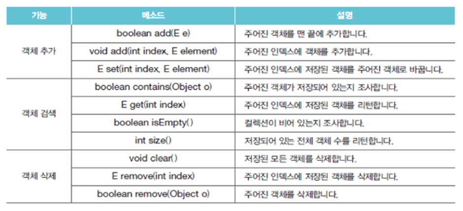 - 객체의 추가/삭제/검색을 위한 다양한 메소드 제공