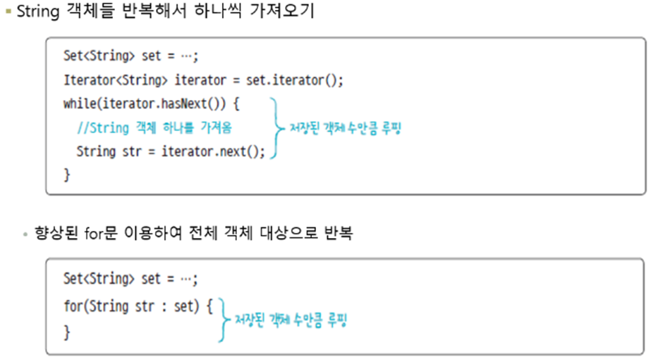 - List 컬렉션과 달리 객체의 저장 순서가 유지되지 않음