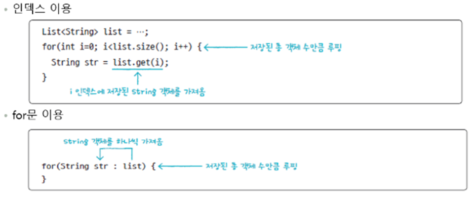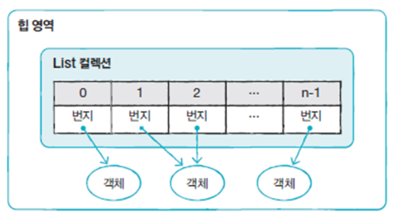- 객체 자체를 저장하는 것이 아닌 객체의 번지를 참조 (중복 저장 가능)
