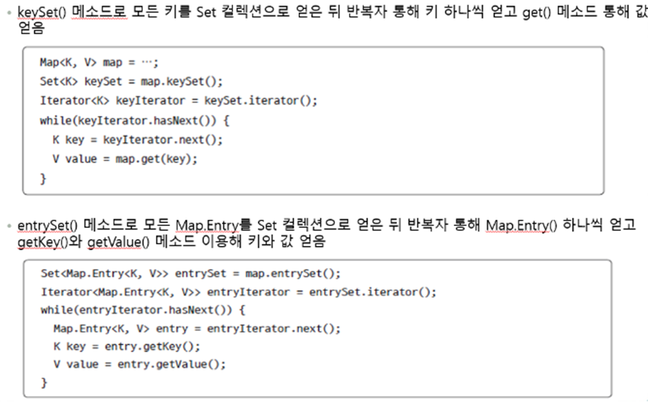 - Entry는 Map 인터페이스 내부에 선언된 중첩 인터페이스