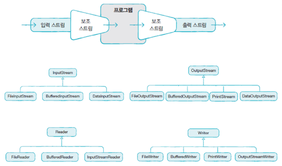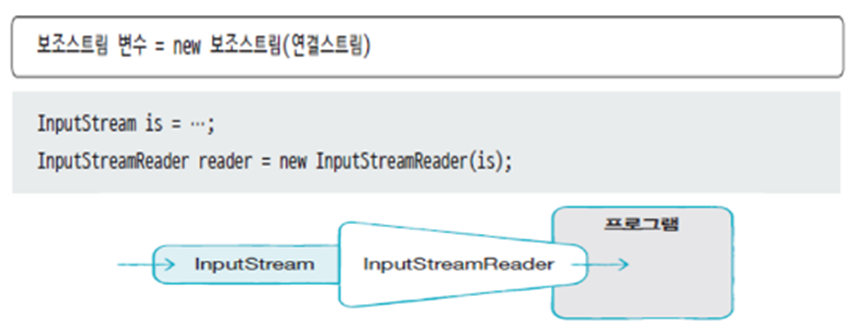 프로그램은 입/출력 스트림을 직접 이용하지 않고 보조 스트림을 이용