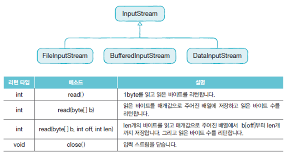 모든 바이트 기반 입력 스트림 클래스는 InputStream 클래스를