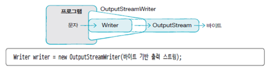 OutputStreamWriter바이트 기반 입력 스트림을 문자 기반 입력 스트림 Reader로 변환하는