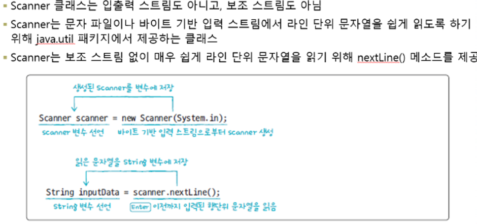자체적으로 입출력이 불가능해 바이트/문자 기반 스트림 등에 연결해 사용