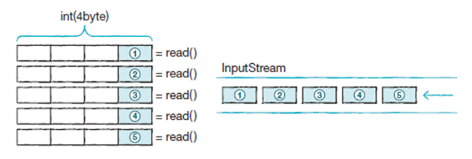 상속입력 스트림으로부터 1byte를 읽고 int(4byte) 타입으로 반환하는 read() 메소드