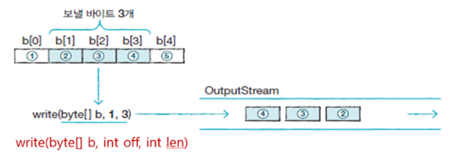 개의 바이트를 보내는 write(byte[] b, int off, int len) 메소드