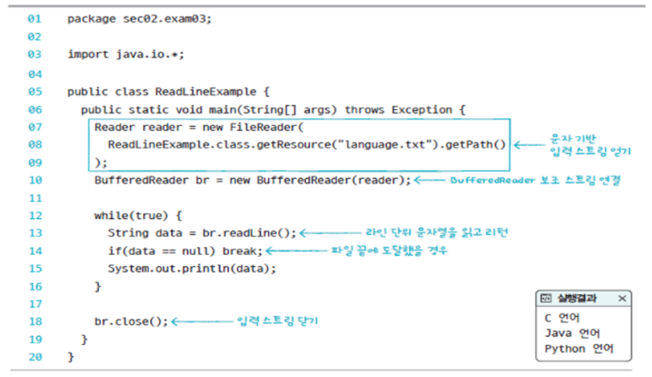 미리 데이터 저장 후 고속 읽기 (입력)BufferedReader는 라인 단위로 파일 문자열을 읽는 readLine() 메소드 제공