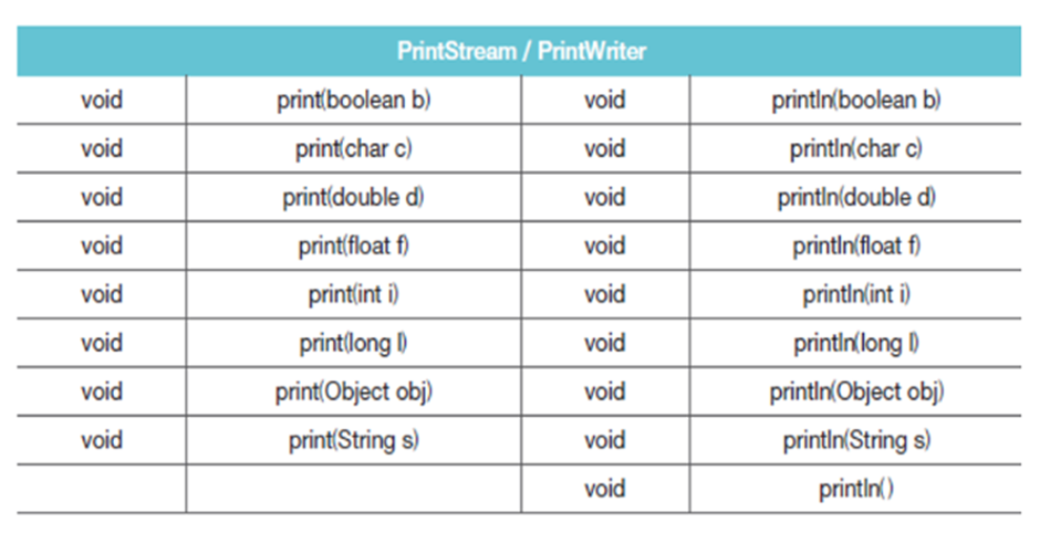 PrintStream & PrintWriter: 바이트 & 문자 기반 출력 스트림과 연결해 프린터와 유사하게 출력출력 데이터 타입에 따른 오버로딩 (println() 메소드는 개행