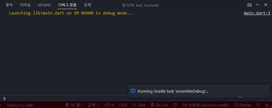 - flutter devices 입력 > 연결 기기 확인 (문제시 재부팅 or 케이블 변경)