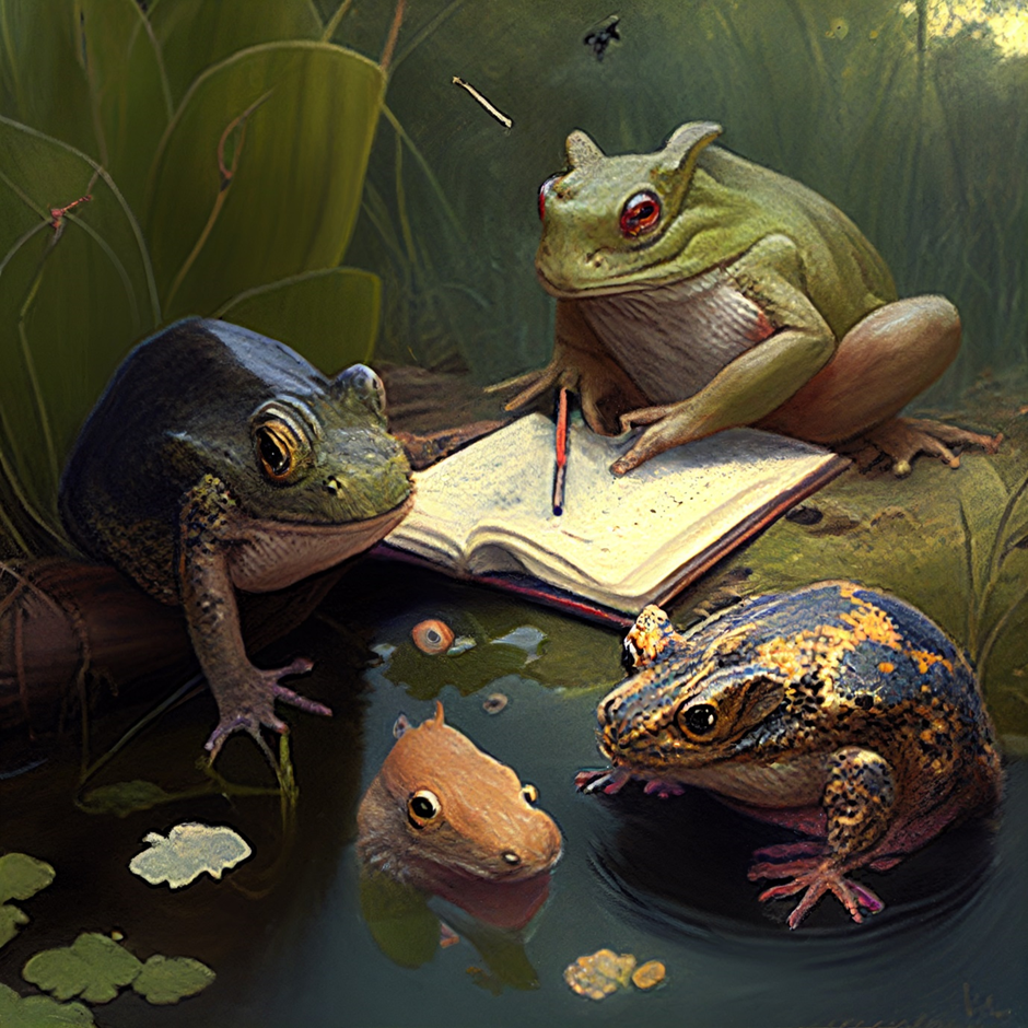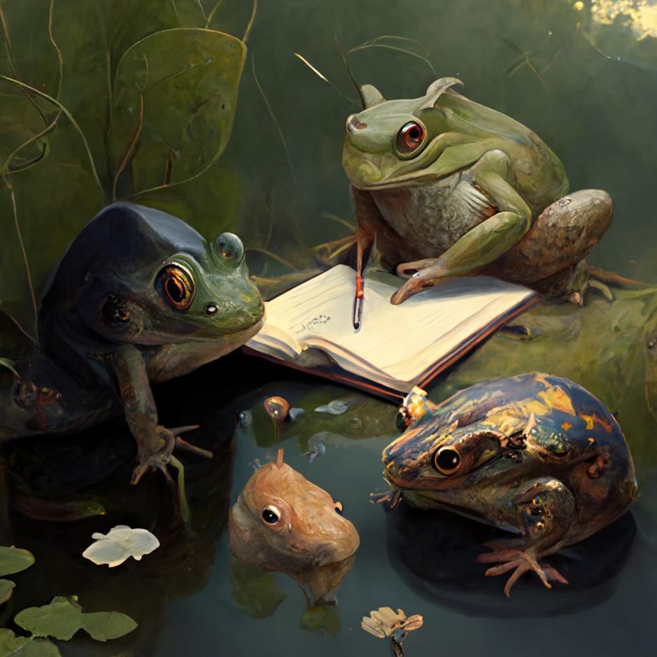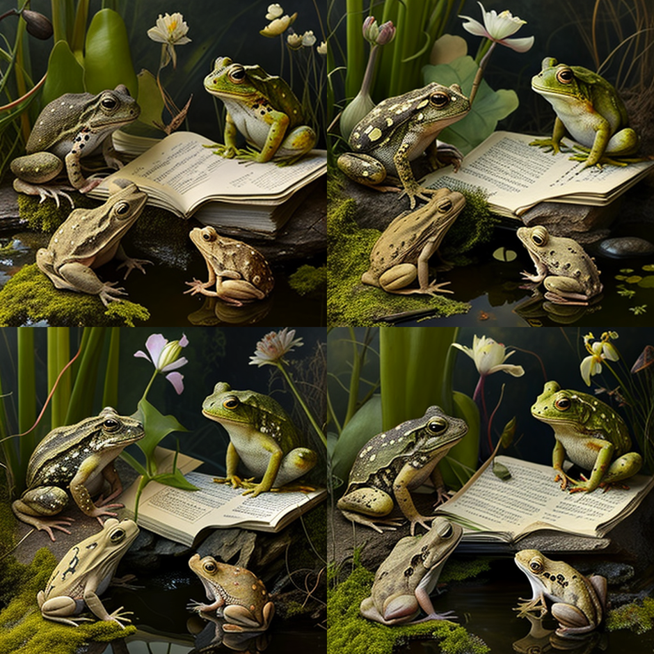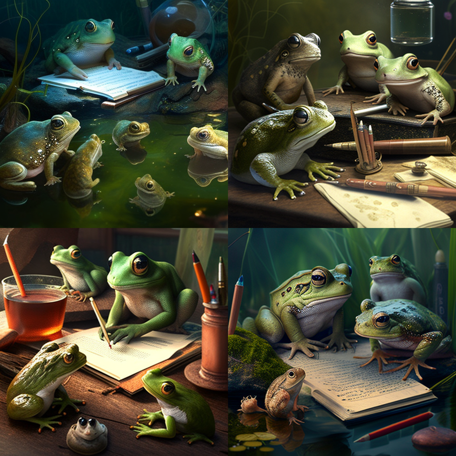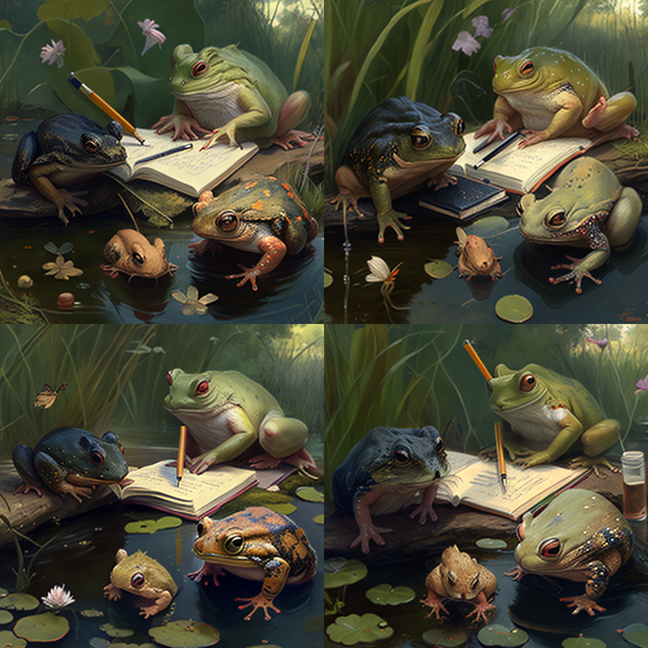 저는 "Frogs and Rabbits Gathering and Writing", "모여서 글 쓰는 개구리와 토끼들"을 한 번 입력해보겠습니다 👀
