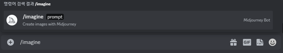 해당 채널 입력창에 prompt 옵션이 있는 /imagine 커맨드를 입력해줍니다. 여기서 prompt란 AI 그림 생성을 위한 키워드라고 볼 수 있는데, 원하는 그림을 위해서 어떤 키워드가 어떤 결과를 가져오는지 이해하고 prompt를 잘 입력하는 것이 매우 중요합니다