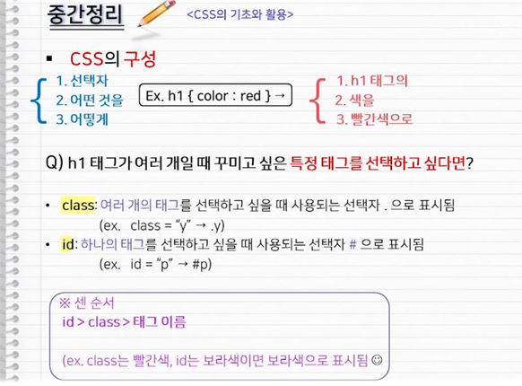 -class를 사용하는 경우: 여러 요소를 공통적으로 선택할 때 사용